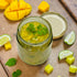 Ingredients: Banganpalli Mango, pineapple, cucumber, onions, garlic, lemon juice, parsley, bell pepper and salt